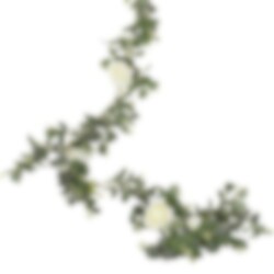 Skapa en elegant och romantisk atmosfär med denna vackra girlang. Girlangen är formad som eukalyptusgrenar dekorerade med delikata vita rosor, perfekt för bröllop, fester och andra speciella tillfällen.