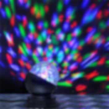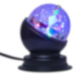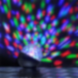 Discolampa flerfärgad är en roterande LED-lampa som ger ifrån sig ett RGB-färgat (Röd-Grön-Blå) ljus. Discolampan är 10 x 9 cm stor och ska endast användas inomhus. Säljs styckvis. 220 volt.