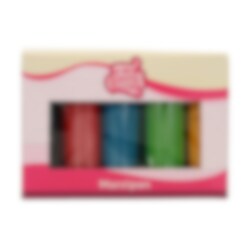 Marsipan i 5 st. olika basfärger; svart, gul, röd, grön och blå. Marsipanen är enkel att bearbeta och skapa små eller stora mästerverk med. För att täcka en tårta som är 25 cm i diameter behövs ca 500 gram marsipan. Har du grädde direkt under marsipanen så rekommenderar vi att du penslar lockets undersida med lite smält smör. Risken finns annars att grädden tränger igenom marsipanen.