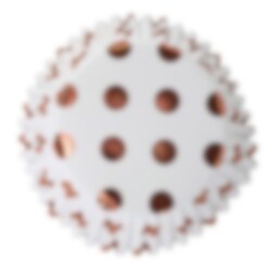 30 st. vita muffinsformar med roséguldfolierade prickar. Använd dessa för att göra fina bakelser till kalaset, festen eller babyshowern. Formarna är ca 5 cm i botten.