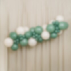 Skapa en vacker ballonggirlang i gröna färgnyanser med vårt Sage-kit, som innehåller totalt 61 ballonger!
