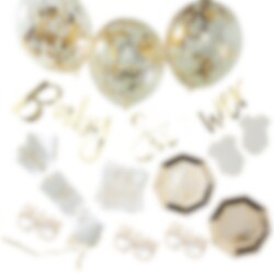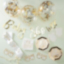 Den här lådan innehåller allt du behöver för att duka och dekorera vackert till din babyshower.