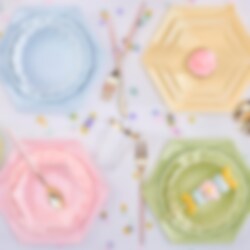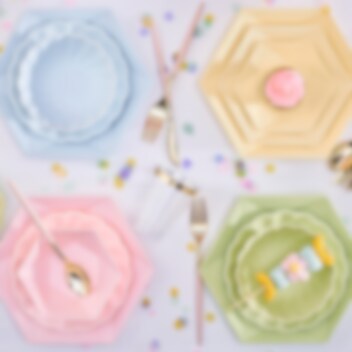Upptäck våra Decor Premium Hexagon-tallrikar i rosa pastellfärg, en del av vår unika kollektion som förenar elegans med miljövänlighet.