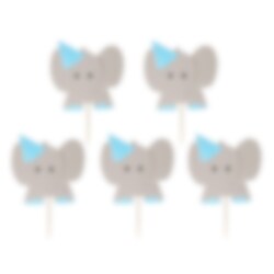 10 st. härliga cake toppers att placera på dina bakverk. Elefanterna är söta att ha till både babyshower och 1-årskalas. Elefanterna är tillverkade av papp och sitter på en pinne av trä. Höjd ca 10 cm.