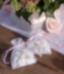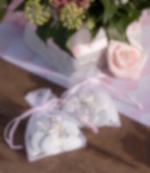 6 st. ljusrosa organzapåsar med texten BB på. Dessa påsar passar väldigt bra till dopet eller babyshowern. Lägg några små godsaker i påsarna och ge bort dom till dina gäster eller placera dom vid deras bordsplats som en liten överraskning.