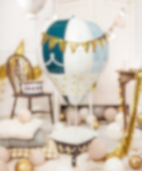 Folieballong som föreställer en gullig luftballong i fina färger med detaljer i guldfolie som passar bra som dekoration till kalas, babyshower och fest. Ballongen är 36 x 110 cm stor uppblåst och kan blåsas upp med helium eller vanlig luft.