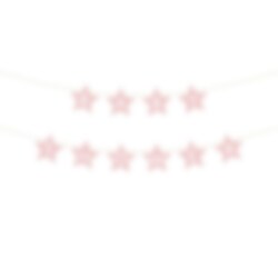 Vacker girlang med motiv av rosa stjärnor med texten "Baby shower" i vit färg. Girlangen är 290 cm lång och motiven är 16,5 x 17,5 cm stora.