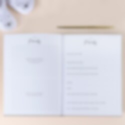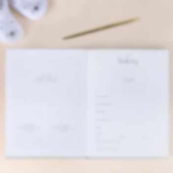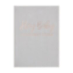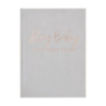 Fin babybok i en ljusgrå mocka med motiv av texten "Hey Baby, Your first years" i folierad roséguld. Använd denna bok för att skriva din bebis utveckling och milstolpar som nås genom det första åren. Du kan även fylla den med foton och rolig fakta. Boken innehåller 62 st. sidor och är 21 x 16 cm stor.