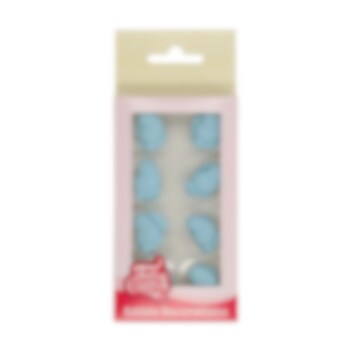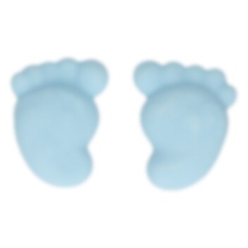 16 st. sockerdekorationer som föreställer små blå babyfötter. Passande att dekorera tårtan eller bakelserna med när det vankas Babyshower.