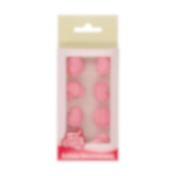 16 st. sockerdekorationer som föreställer små rosa babyfötter. Passande att dekorera tårtan eller bakelserna med när det vankas Babyshower.