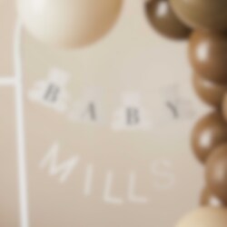 Dekorera din babyshower med denna snygga anpassningsbara girlangen med texten baby i fyra söta teddybjörnar och medföljande bokstäver. Passar perfekt att matcha med vårt tillhörande tema Hello Baby och Teddy Bear Babyshower.