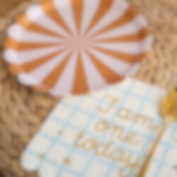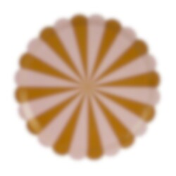 6 st. vackert formade tallrikar med bruna och rosa ränder. Tallrikarna är tillverkade av papp och har en diameter på 21 cm.