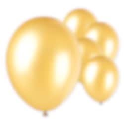 10-pack med exklusiva ballonger i fin guld färg. Dessa ballonger har en mycket fin lyster och är vackra att dekorera med och blanda med andra färger till en vacker ballongbukett. Ballongerna blir ca 30 cm när de blåses upp.