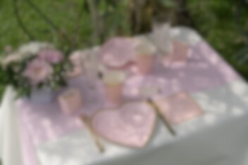 Rosa bordslöpare i luftigt material dekorerad med mängder av små guldglänsande prickar. Bordslöparen passar bra till vilket festligt arrangemang som helst och den rosa färgen gör den tacksam att komplettera med andra dukningstillbehör i rosa och guld.