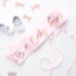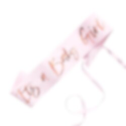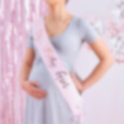 Underbart fin rosa sash att bäras av den blivande mamman på babyshowern! Sashen är ljusrosa med fint text i roséguld. Sashen är 75 cm (från axel till höft) och 10 cm bred.