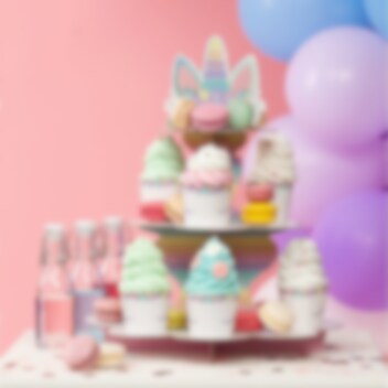 Skapa magi på kalaset med denna enhörning muffinsställning! Med tre våningar och en sagolik enhörningsdesign blir den ett underbart tillskott till dessertbordet. Perfekt för muffins, cupcakes eller andra godsaker. Ställningen är 41 cm hög och 34 cm bred, och ger en förtrollande touch till alla kalas med enhörningstema!