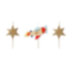 Ta födelsedagstårtan till nya höjder med detta 3-pack tårtljus i form av ett charmigt flygplan och två guldstjärnor. Tårtljusen är 4,5 x 5 cm stora.