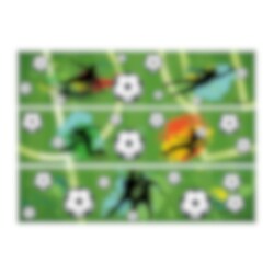 Skapa en riktigt sportig kalastårta med detta tårtdekorband i fotbollstema! Med de gröna bakgrunderna, fotbollarna och spelarsilhuetterna blir det enkelt att dekorera tårtans kant och ge tårtan en tydlig fotbollskänsla.