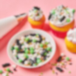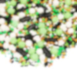 Ladda upp för fest som ett riktigt fotbollsproffs med denna sportiga strösselmix! En energifylld kombination av gröna, svarta och vita dekorationer med små fotbollar och gnistrande pärlor skapar den perfekta stämningen för sportiga firanden. Passar utmärkt för cupcakes, tårtor och andra godsaker till fotbollsfesten.
