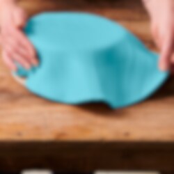 Att täcka en tårta med sockerpasta har aldrig varit enklare än med FunCakes färdigutkavlade tårtlock av sockerpasta. Detta ljusblåa lock har redan kavlats ut till rätt tjocklek och är därför redo att läggas direkt på din tårta direkt från förpackningen. Njut av en silkeslen, perfekt jämn yta utan att behöva knåda. Också mycket praktiskt när du ska skära ut figurer för att dekorera kakor.