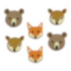 5 st. sockerdekorationer föreställande söta björnar, rådjur och räv ansikten. Dekorera muffinsen eller tårtan med dessa för en fin effekt när det är kalasdags med djurtema.