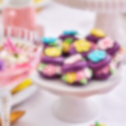 Förpackningen innehåller både större och mindre blommor i olika pastellfärger som passar lika bra till vår- och sommarbakning som till påskfiranden eller kalas. Placera dem direkt på frosting, grädde eller glasyr för en enkel men effektfull dekoration.