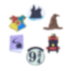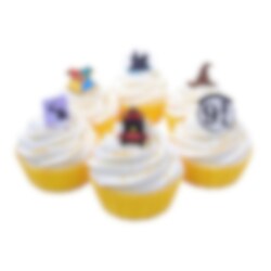 6 st. handgjorda och unika sockerdekorationer med motiv från Harry Potter och Hogwarts som du kan dekorera både cupcakes och tårtor med. De passar perfekt till ett kalas med Harry Potter.
