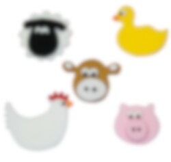 5 st. sockerdekorationer formade som små gulliga bondgårdsdjur. Blir fina på tårtan eller dina cupcakes till kalaset.