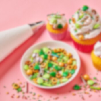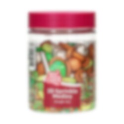 Ge dina bakverk en vild och exotisk touch med denna djungelinspirerade strösselmix! En spännande kombination av gröna blad, träfärgade ringar och skimrande detaljer skapar en äventyrlig dekoration för cupcakes, tårtor och andra godsaker. Perfekt för djungelkalas och temabakning.