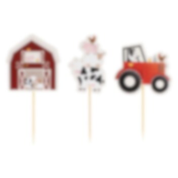 6 st. cake toppers med roliga bondgård-motiv som blir en fin dekoration på dina bakverk till kalaset. Höjd 10 cm.