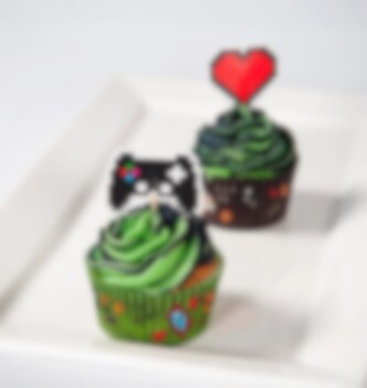 12 st. muffinsdekorationer med skojiga spelmotiv. Perfekta att dekorera på muffinsen när det vankas kalas med riktigt kul speltema.