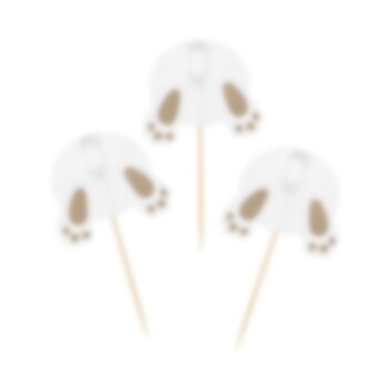 Gör dina bakverk extra festliga med dessa söta cake toppers! Varje dekoration föreställer en liten kanin som dyker ner i godsakerna – komplett med fluffig svans och gyllene tassdetaljer.