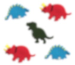 5 st. sockerdekorationer föreställande dinosaurier. Dekorera muffinsen eller tårtan med dessa när det är kalasdags.