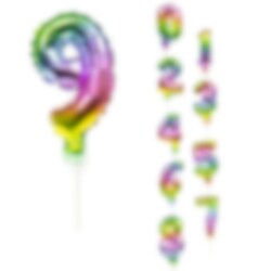 Folieballong i regnbågsfärger i ett mindre format att ha på din tårta eller dina bakverk inför festen eller kalaset. Ballongen är ca 13 cm hög och sitter på en plastpinne och blåser upp sig själv. Kombinera hur du vill då ballongerna finns tillgängliga i siffrorna 0-9. Priset avser en ballong. Läs instruktionen på paketet.