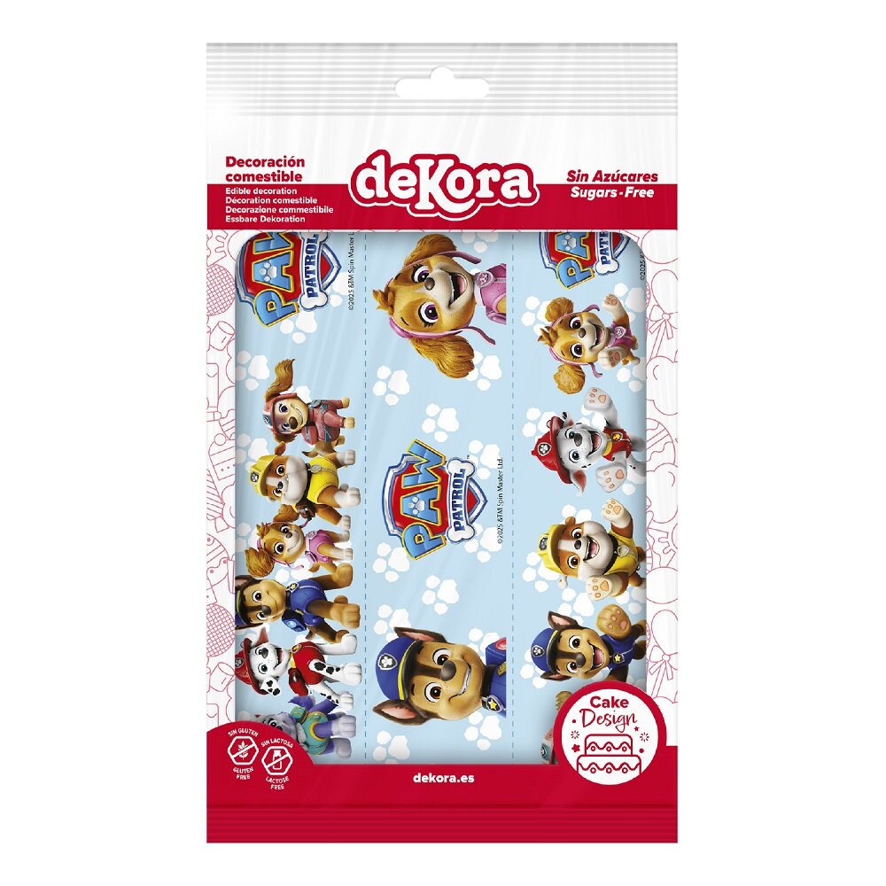 Dekorbanden pryds av flera av de välkända karaktärerna och gör det snabbt och enkelt att ge tårtan ett lekfullt och proffsigt utseende. Perfekt till ett Paw Patrol-kalas eller till alla barn som älskar de modiga valparna och deras spännande uppdrag.