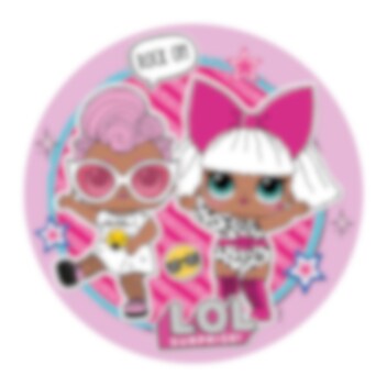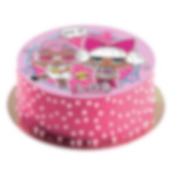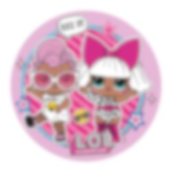 Tårtbild av oblat med ett riktigt fint motiv från serien LOL Surprise. Baka en egen tårta med hjälp av denna tårtbild inför kalaset med Lol Surprise tema. Tårtbilden är klar att läggas på tårtan.