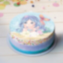 Tårtbild av oblat med motiv av en söt sjöjungfru bland snäckorna. Baka en egen tårta till barnkalaset med sjöjungfrutema och placera din oblat på toppen. Bilden som är 20 cm i diameter är enkel att använda. Tårtbilder av oblat är gluten- och laktosfria och har inget tillsatt socker. Passar för vegetarianer.