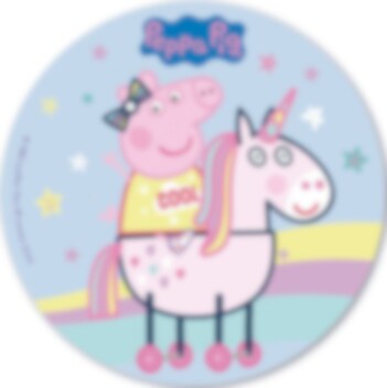 Vacker tårtbild av oblat med sött motiv av Greta Gris. Baka en egen personlig tårta till barnkalaset. Bilden som är 20 cm i diameter är enkel att använda. Tårtbilder av oblat är gluten- och laktosfria och har inget tillsatt socker. Passar för vegetarianer.
