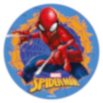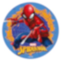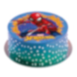 Tårtbild av oblat med motiv av superhjälten Spiderman. Baka en egen tårta med detta snygga motiv. Bilden som är 20 cm i diameter är enkel att använda. Tårtbilder av oblat är gluten- och laktosfria och har inget tillsatt socker. Passar för vegetarianer.