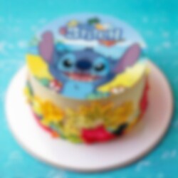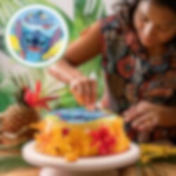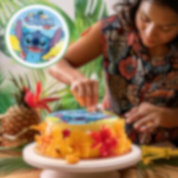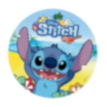 Tårtbild av sockerfri fondant med riktigt gulligt motiv av Stitch. Tårtbilden är färdig att läggas direkt på tårtan och har ett skarpare och mer detaljerat tryck än vad en oblatbild har. Dessutom har bilden en god vaniljsmak. Bilden är 20 cm i diameter