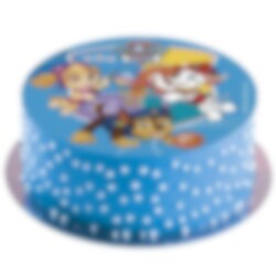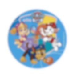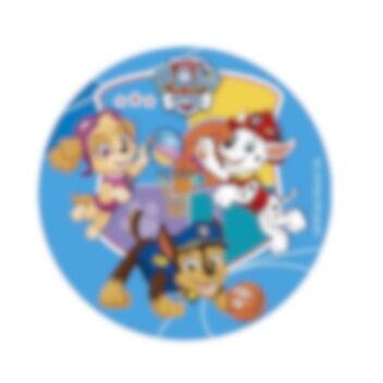 Tårtbild av sockerfri fondant med motiv av Chase, Marshall och Skye från Paw Patrol. Tårtbilden är färdig att läggas direkt på tårtan och har ett skarpare tryck än vad en oblatbild har. Bilden är ca 15,5 cm i diameter.