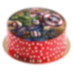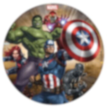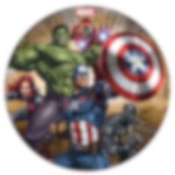 Vacker tårtbild av god sockerfri fondant med motiv av superhjältarna från Avengers. Tårtbilden är färdig att läggas direkt på tårtan och har ett skarpare tryck än vad en oblatbild har. Bilden är ca 16 cm i diameter.