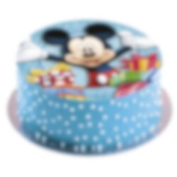 Vacker tårtbild av god sockerpasta med fint motiv av Musse Pigg. Tårtbilden är färdig att läggas direkt på tårtan och har ett skarpare och mer detaljerat tryck än vad en oblatbild har. Dessutom har bilden en god vaniljsmak. Bilden är ca 20 cm i diameter. Följ instruktionen här nedan.