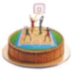 Skapa en imponerande tårta i baskettema! Med detta roliga tårtdekorationskit kan du enkelt förvandla en vanlig tårta till en liten basketplan där spelarna kämpar om bollen under korgen.