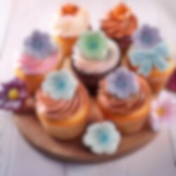 Detta set innehåller 10 detaljerade dekorationer i form av blommor och rosetter i mjuka blå, lila och gröna nyanser – perfekta för att skapa en stilfull och harmonisk dekoration på cupcakes, tårtor och andra festliga bakverk.