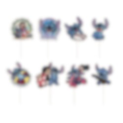 16 st. fina cake toppers med bilder från Lilo och Stitch. Perfekta för att sätta en aloha-touch på bakverken inför kalaset. Storleken varierar mellan 8 och 10 cm i höjd.