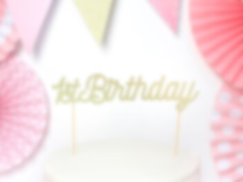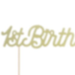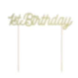 Jättefin tårtdekoration med motiv av texten "1st Birthday" i guldglittrande färg. Dekorera tårtan med denna för att få till en snygg effekt när det är dags för 1-årskalas. Dekorationen är ca 20 x 20 cm stor.