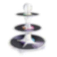 Ge festen en glittrande touch med denna spektakulära muffinsställning i discotema. Med tre våningar och en glänsande discokula på toppen blir den en perfekt centerpiece på dessertbordet. Ställningen är 39 cm hög och 34 cm bred, utformad för att lyfta fram dina muffins och bakverk på ett festligt sätt. Ett måste för alla som älskar disco och kalas med stil.