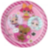 8 st. papptallrikar i rosa nyanser. Tallrikarna har motiv av Glitterati gänget från LOL Surprise i mitten och kanterna har ränder i rosa och metallic. Tallrikarna är ca 23 cm i diameter.