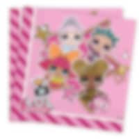 20 st. servetter i rosa nyanser och med motiv av Queen Bee, Glitter Queen, Cosmic Queen och Crystal Queen på båda sidor från den populära dockserien LOL Surprise. Ett vackert komplement att ha med till dukningen inför ditt kalas med LOL Surprise som tema. Servetterna är 2-lagers och är ca 33 x 33 cm stora när de är utvikta.